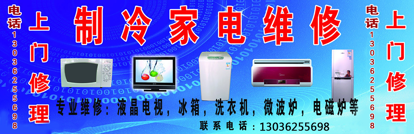 上饒市品牌家電綜合售后部是一家專業從事:空調維修,空調移機,空調清洗,空調安裝,空調加氟,彩電維修,冰箱維修,熱水器維修,洗衣機維修,煤氣灶維修,太陽能維修,油煙機維修等各種家電維修公司是一家大型的專業的家電維修保養服務公司,規模較龐大,以空調,冰箱,煤氣灶等家電為主的專業技術化服務企業。維修電話:130-3625-5698,130-3625-5698